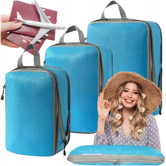 ❇️Organizer Kompresyjny Podróżny to zestaw 3 sztuk w odcieniach niebieskiego, który stanie się Twoim niezbędnikiem podróżnym! Z naszym zestawem szybko i łatwo uporządkujesz swoje rzeczy do podróży. Dzięki kompresyjnym właściwościom naszych organizerów zyskasz więcej przestrzeni w swoim bagażu. Nasze organizery to gwarancja szybkiego i bezproblemowego pakowania, idealne dla osób, które cenią sobie wygodę.