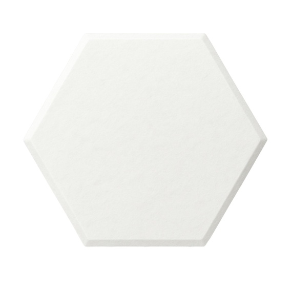 Biały panel filcowy 30×26 cm w formie heksagonu. Grubość 0,9 cm. Dekoracja i izolacja akustyczna w jednym - bez wiercenia.