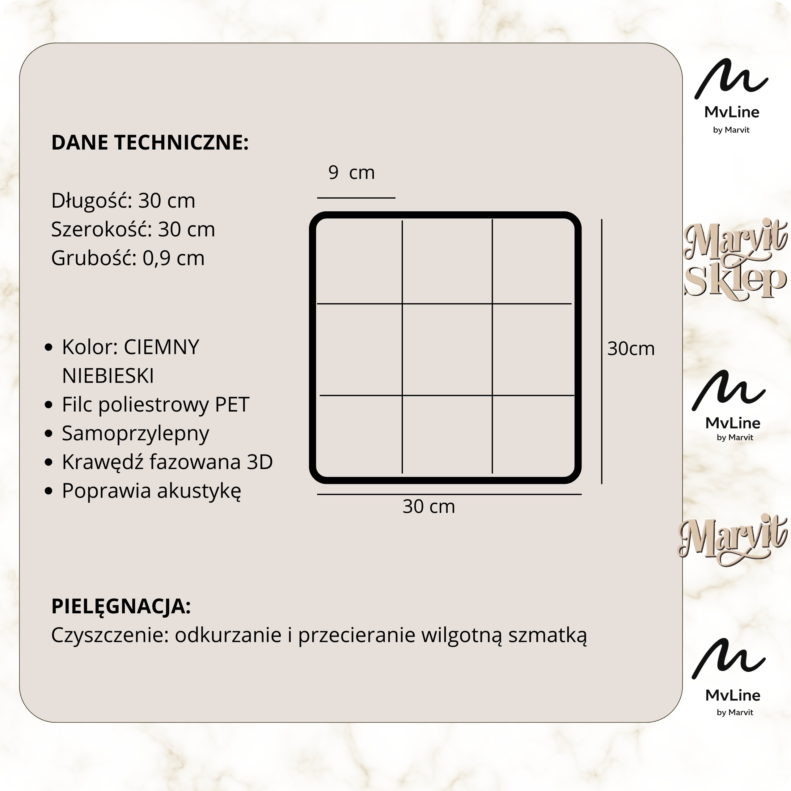 Ciemnoniebieski panel 3D 30×30 cm z filcu PET - samoprzylepny, praktyczny i estetyczny. Idealny do tworzenia akcentów na ścianach oraz poprawy akustyki.